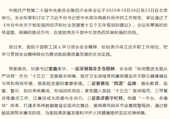 党的二十届四中全会精神在重庆医药高专附一院党员干部职工中引发热烈反响(二)
